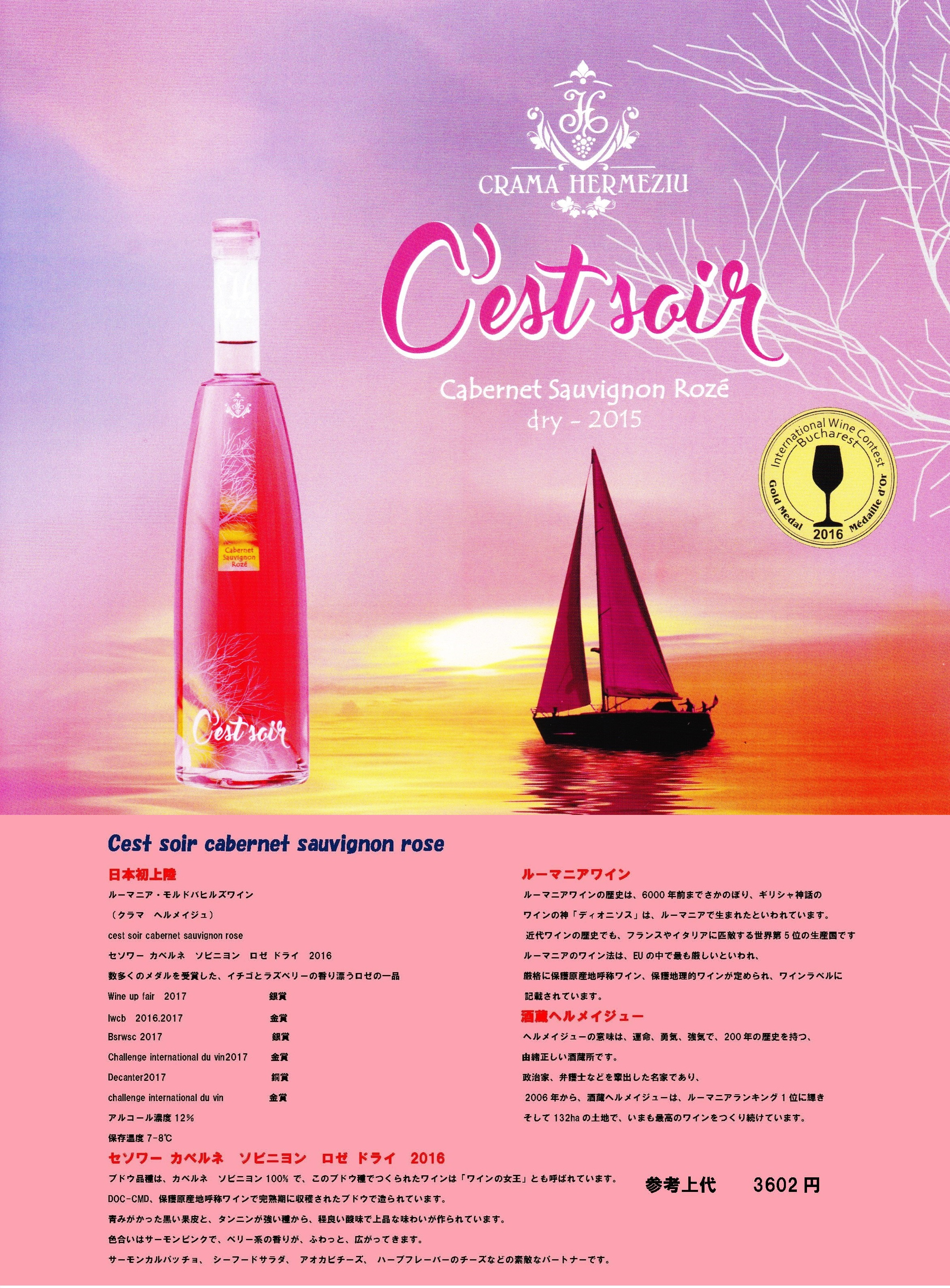 商品名:カベルネ ソビニヨン ロゼ ドライ - 2016